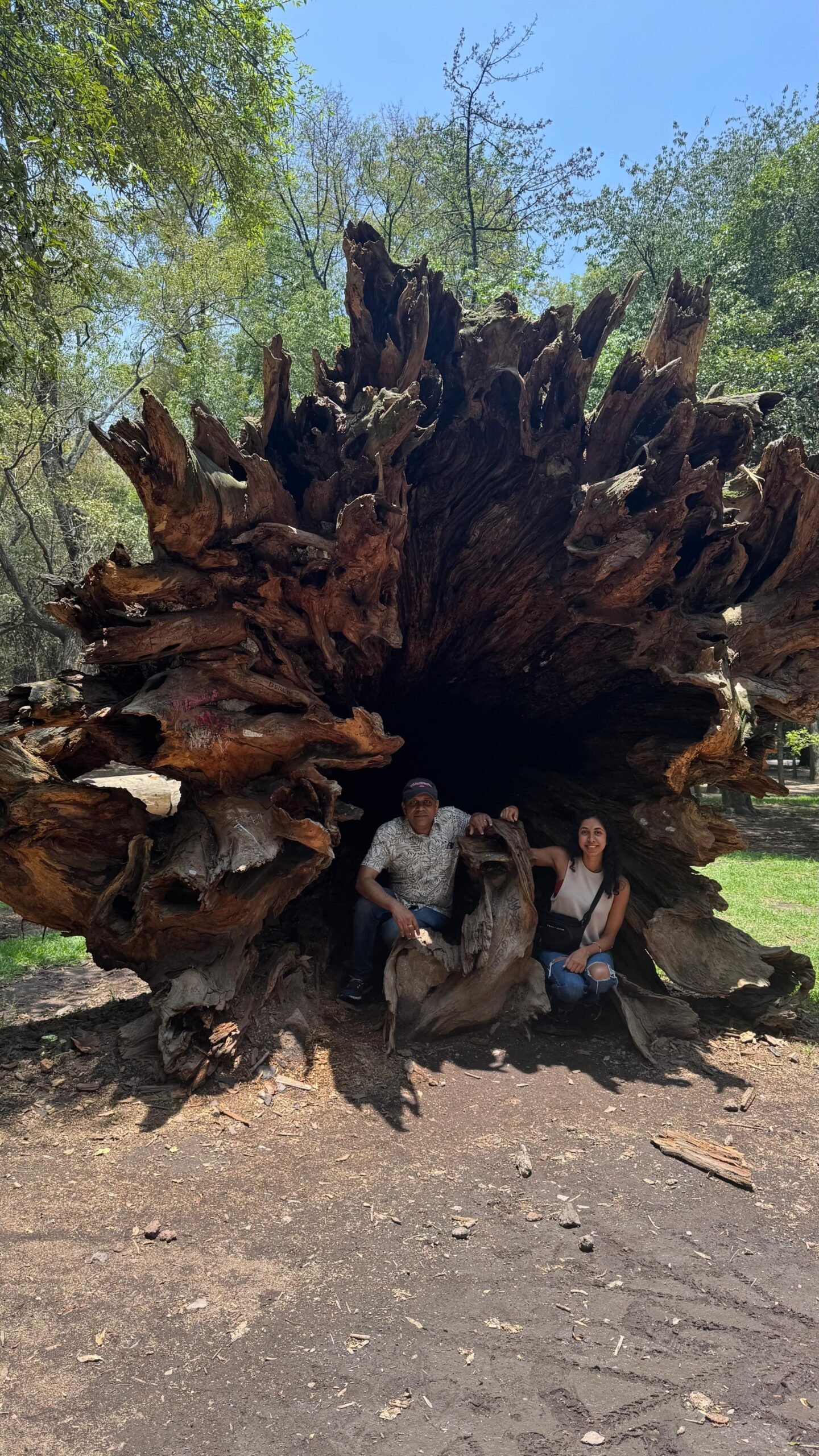 The path wound gently uphill, shaded by tall trees and echoing with birdsong. Along the way, we stopped to take photos beside the roots of a massive uprooted tree. I must say, nature’s own sculpture. Eventually, we reached Chapultepec Castle (Castillo de Chapultepec), perched majestically on a hill overlooking Mexico City.